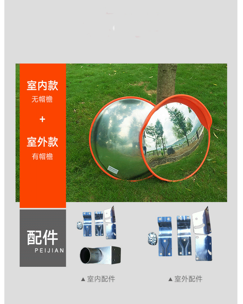 > 百舸 交通广角镜 室内外道路广角镜子 凸面反光镜道路转角弯镜凹凸镜防盗镜 直径60CM室外款(无立杆)