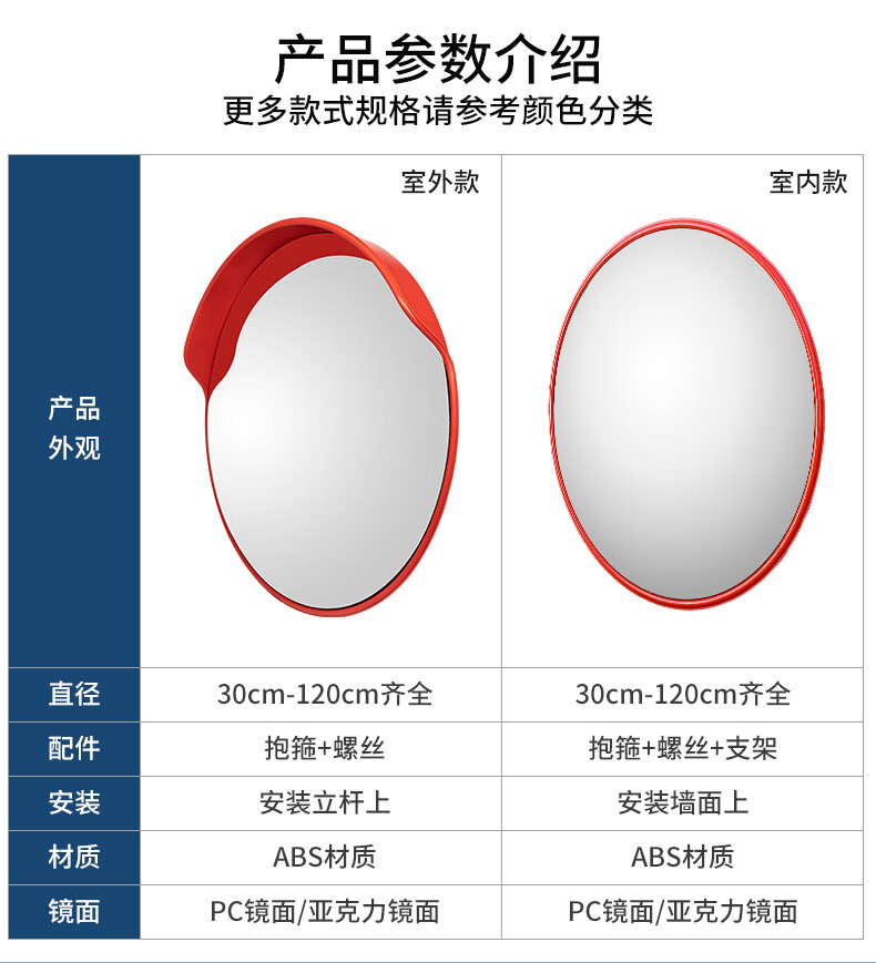 > 百舸 室内广角镜 直径60CM 道路交通弯道转角凸面反光镜 凹凸镜防盗镜