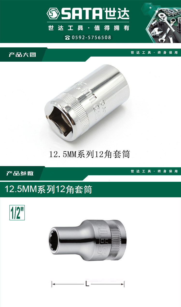 > 世达(SATA) 12.5MM系列12角套筒18MM 13609 现货