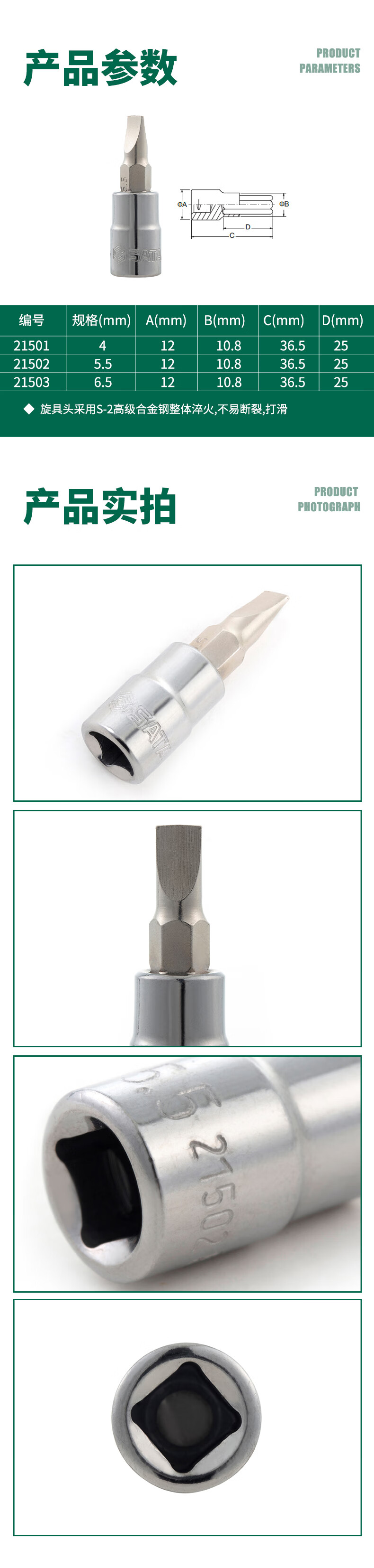 世达(SATA)6.3MM系列一字形旋具套筒6.5MM 21503