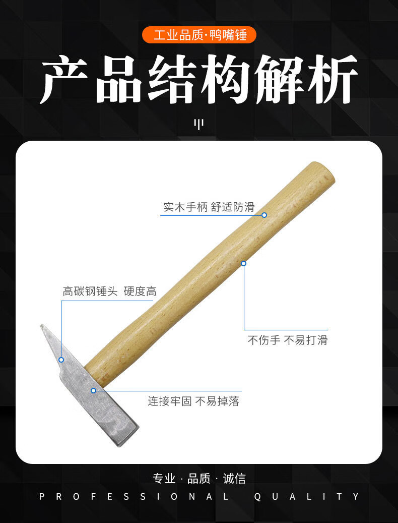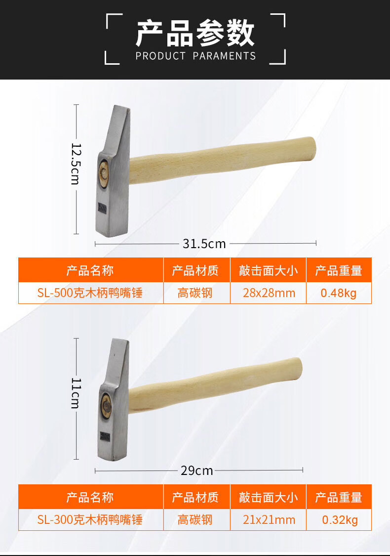 > 贝傅特 鸭嘴锤 木柄钳工锤小铁锤钣金锤电工锤迷你锤子手锤扁锤铁榔头工具 SL-500克木柄鸭嘴锤