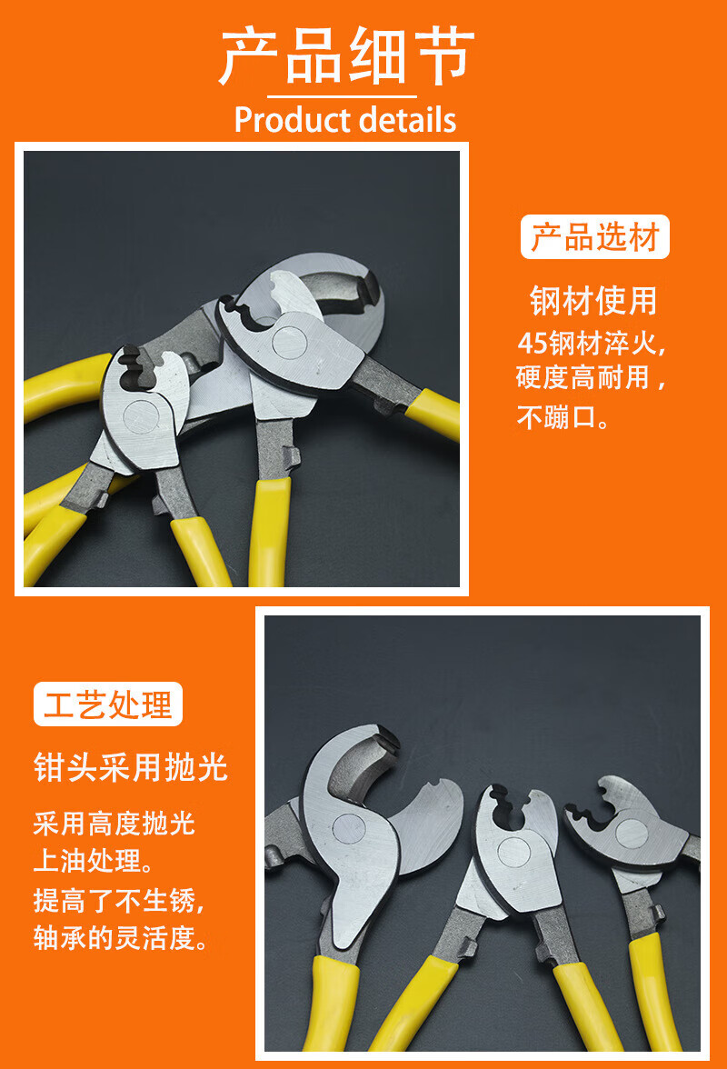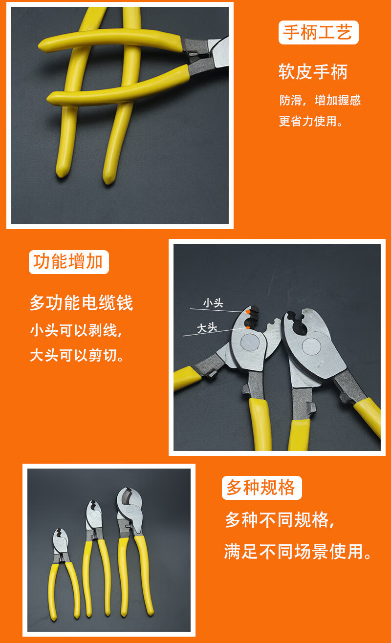 > 贝傅特 电缆剪 多功能6寸8寸10寸电工钳子省力电缆剪电线剪刀钢筋钳断线缆剪 10寸小头电缆剪 3把
