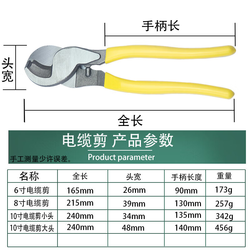 贝傅特 电缆剪 多功能6寸8寸10寸电工钳子省力电缆剪电线剪刀钢筋钳断线缆剪 10寸小头电缆剪 3把