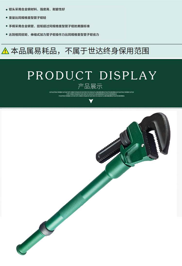 世达(SATA) 五金水暖维修工具水管安装管子钳子18英寸水管钳扳手 70836 现货