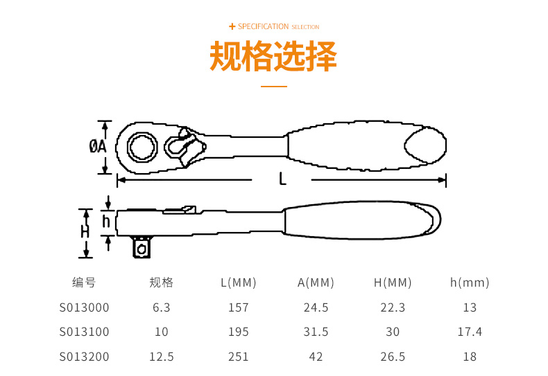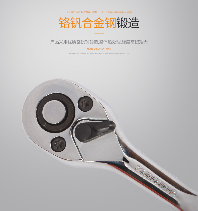 钢盾 SHEFFIELD S013200 快速棘轮扳手12.5mm系列专业级快脱胶柄棘轮扳手