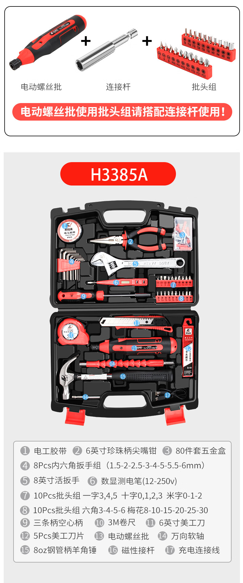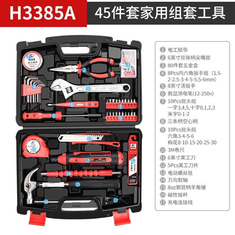 卡夫威尔 电动螺丝刀工具箱套装小型迷你锂电充电式工具电起子家用组套45件套 H3385A