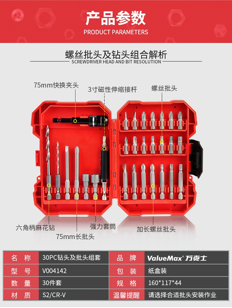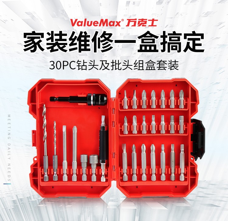 > 万克宝30件套S2材质螺丝刀批头套筒套装电动螺丝批头加长旋具头塑盒精装 30件套(V004142)