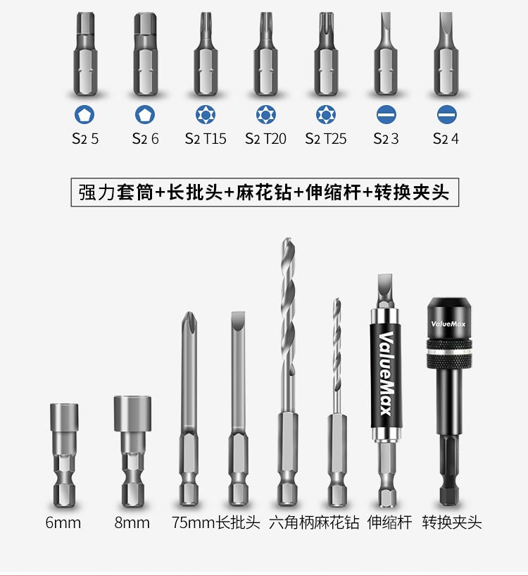 万克宝30件套S2材质螺丝刀批头套筒套装电动螺丝批头加长旋具头塑盒精装 30件套(V004142)