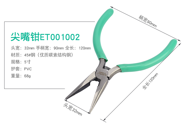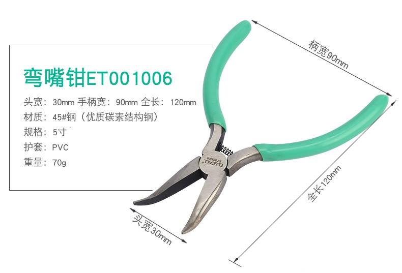 伊莱科(ELECALL)五金迷你工具钳斜嘴钳尖嘴老虎钳针嘴钳顶切弯嘴钳子多功能钳子 5寸尖嘴钳ET001002