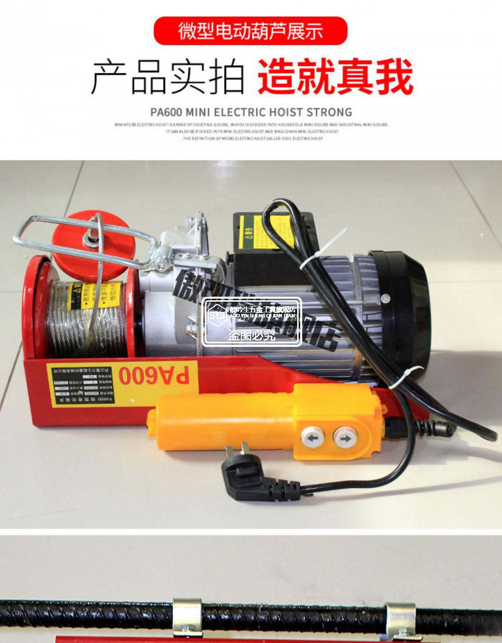 > 微型电动葫芦220v家用装修小吊机微型电动葫芦220v家用装修室内吊机小型室外升降提升机卷扬机吊车 PA200绳长12米(100公斤~200公斤)
