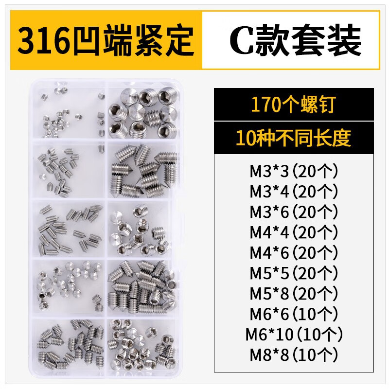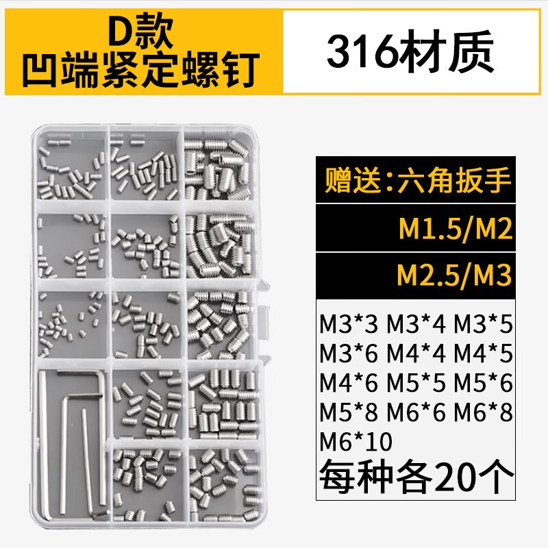 > 佰瑞特316不绣钢紧定螺钉凹端内六角无头螺丝钉机米顶丝基米螺丝DIN916 M6*20【20粒】