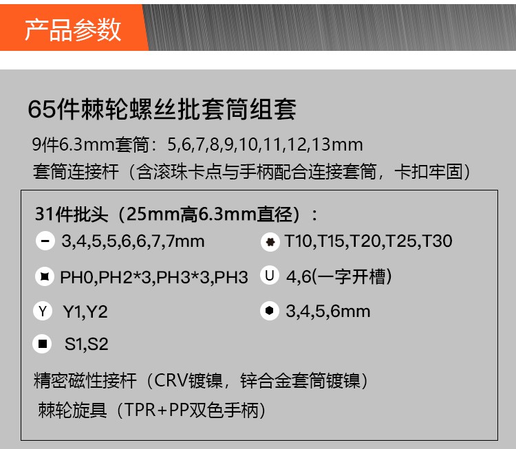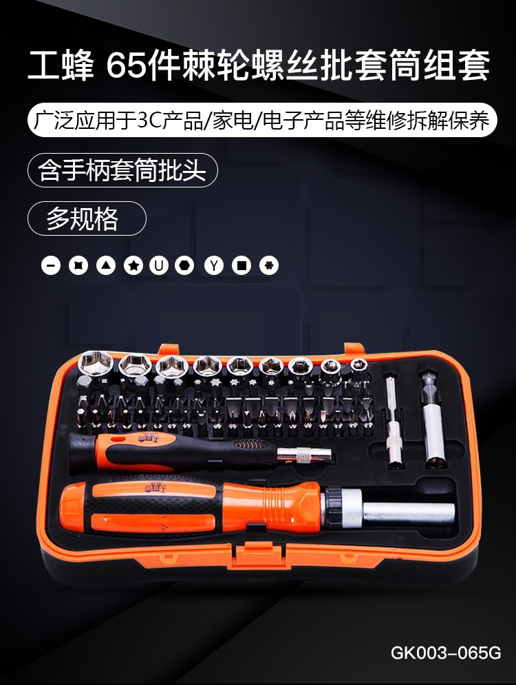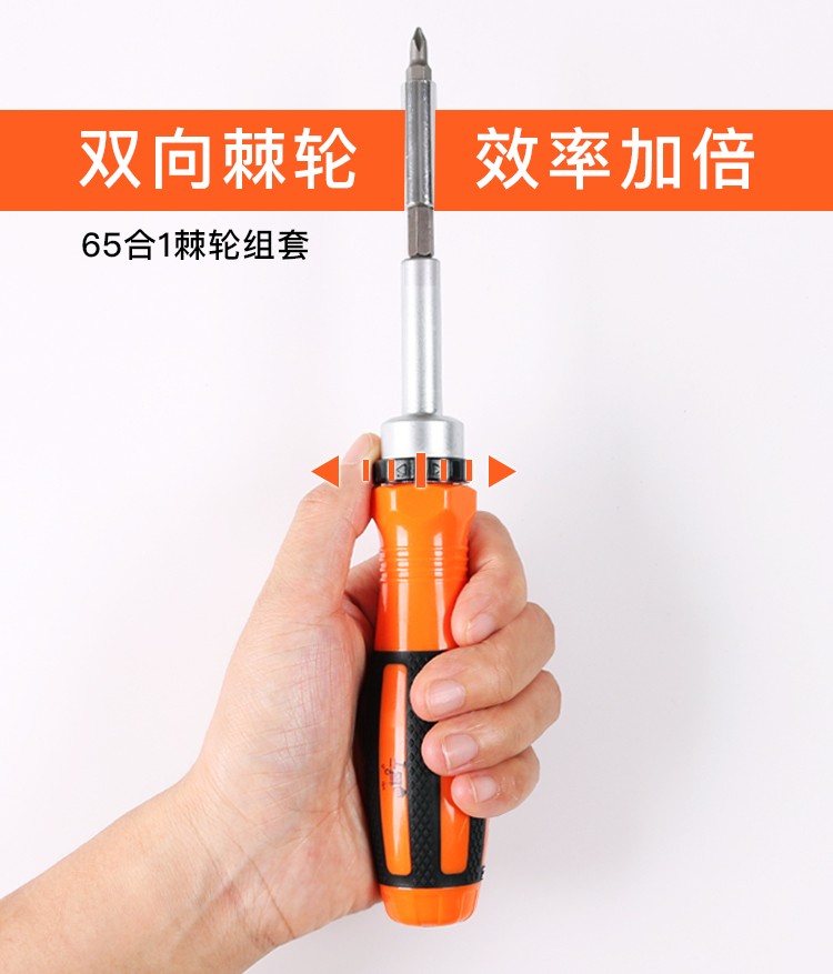 > 工蜂棘轮省力手柄65合1螺丝刀套装电讯五金手提工具箱组3当调节螺丝手柄家用起子套装