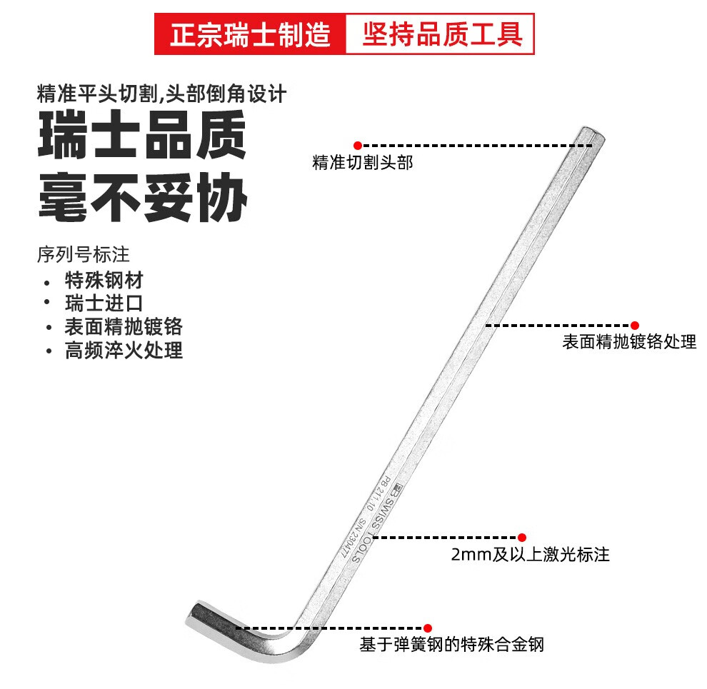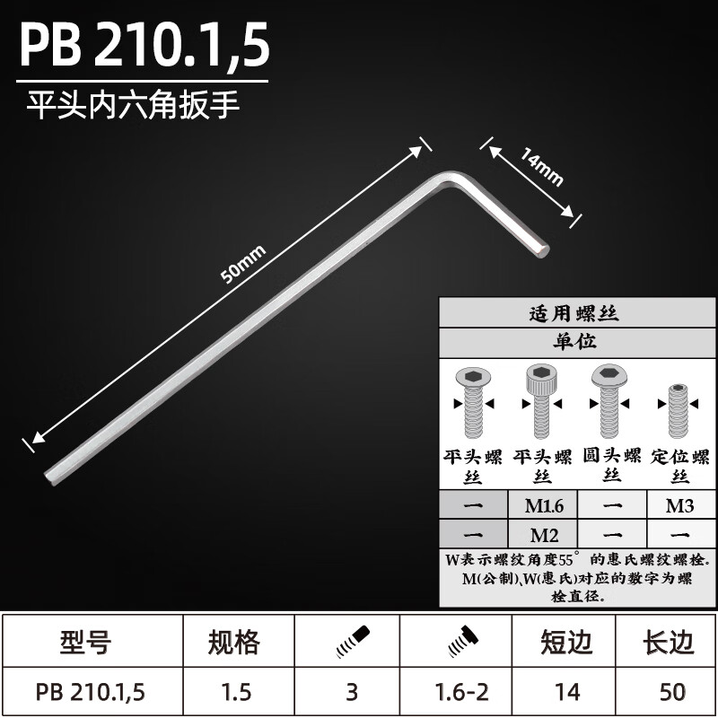 > PB SWISSTOOLS瑞士进口平头公制内六角扳手210 平头 1.5mm 长度40mm