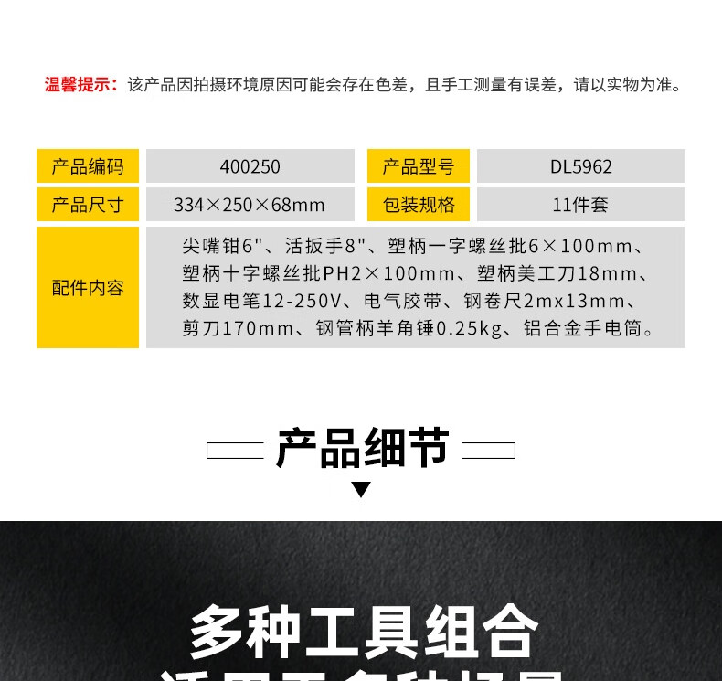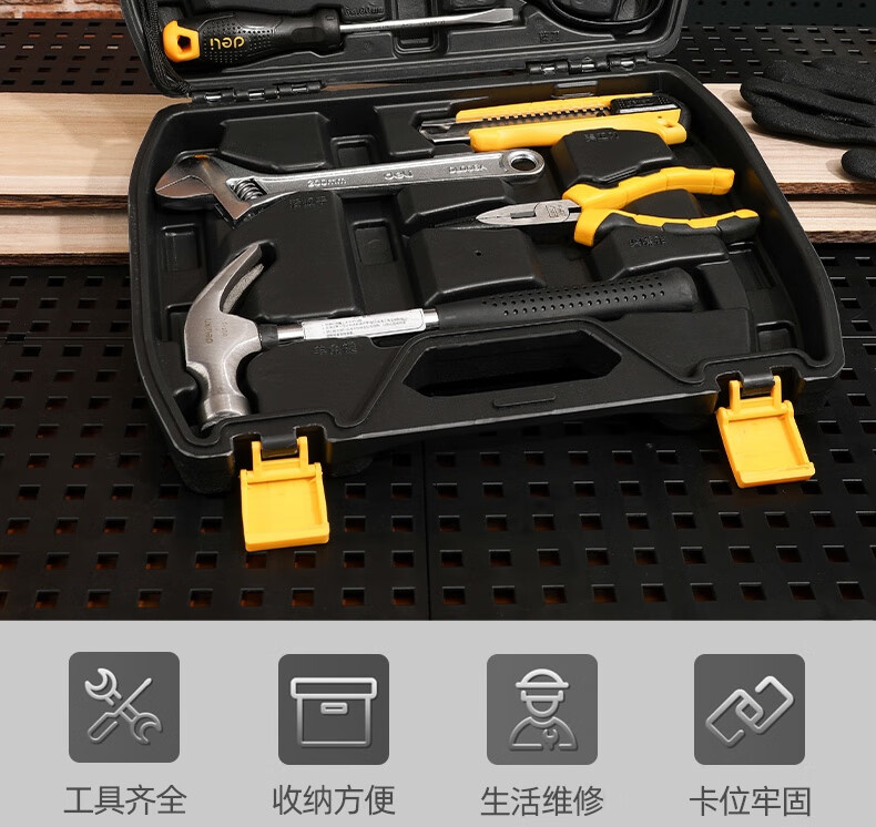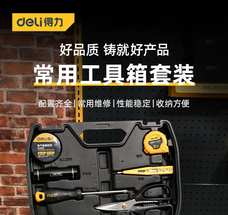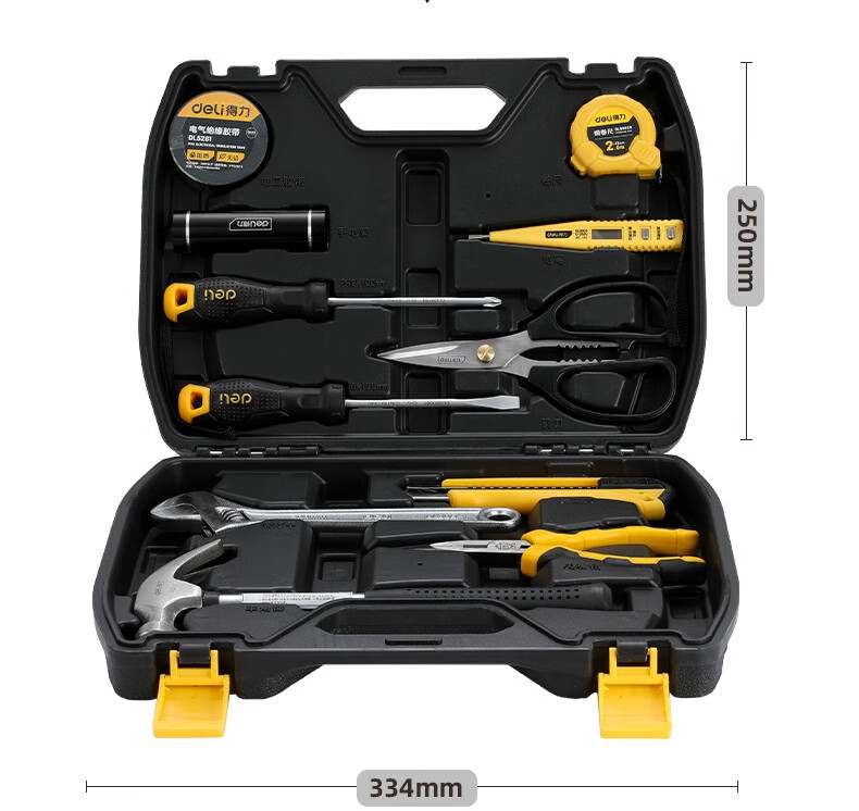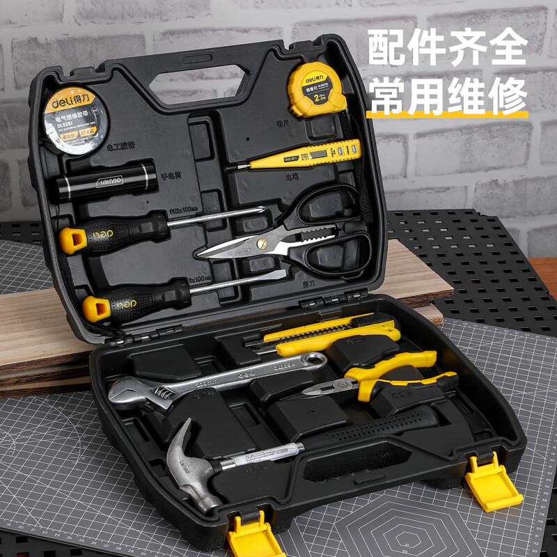 > 得力(deli) 多功能五金工具箱套装 手动工具电工维修工具箱应急包11件 DL5962 400250