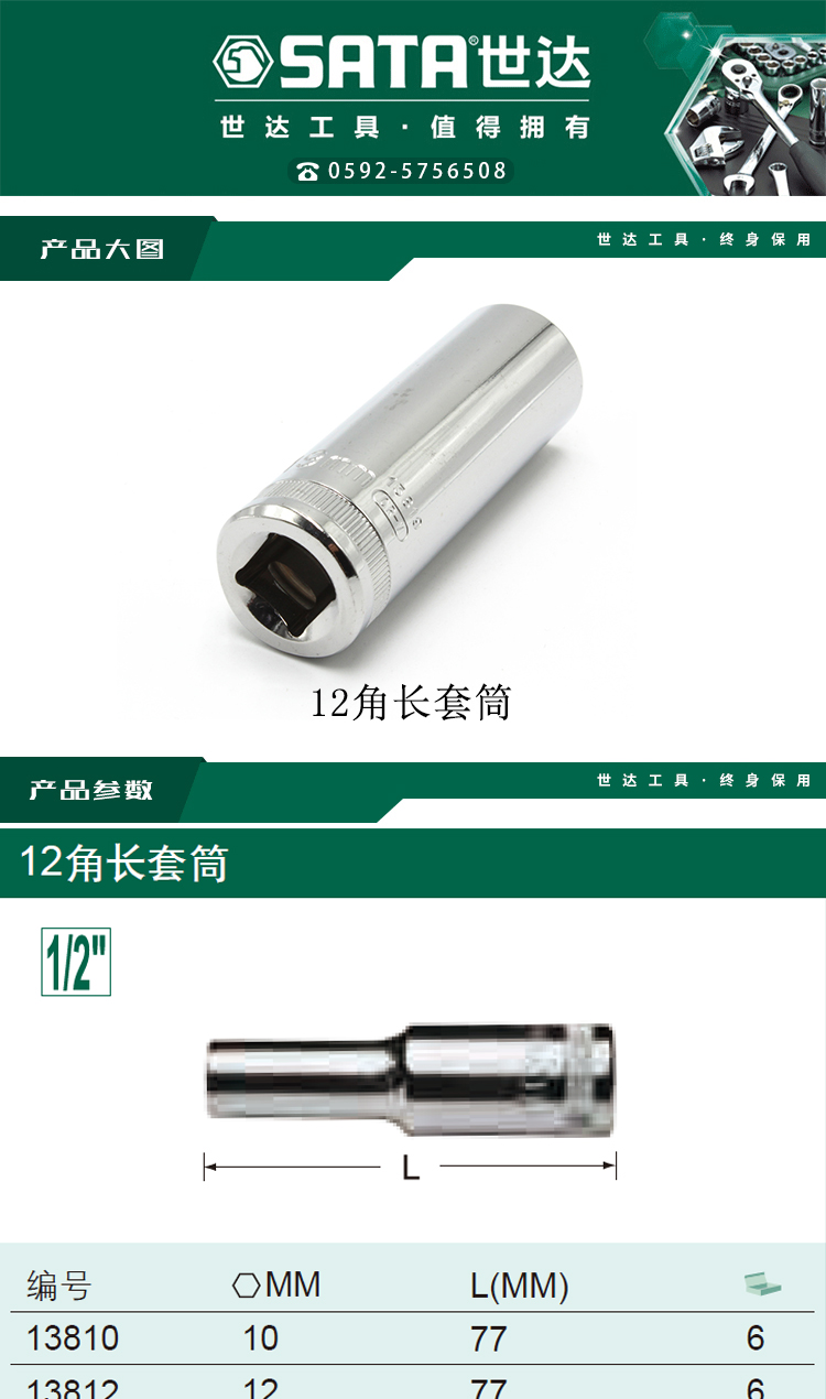 > 世达(SATA) 12.5MM系列12角长套筒13MM 13813 现货
