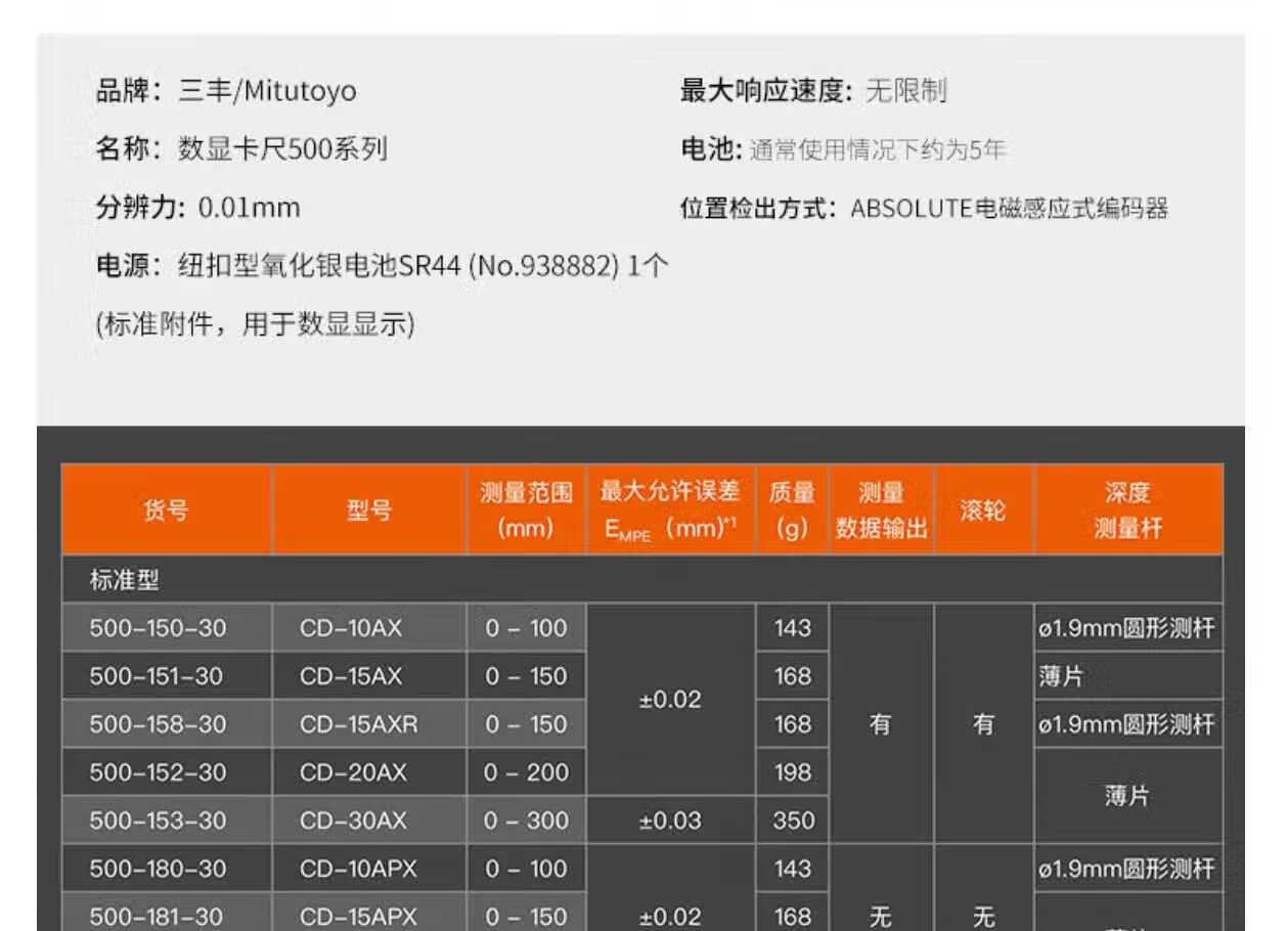 > 三丰(Mitutoyo) 数显卡尺 高精度卡尺 游标卡尺 日本原装进口 500-173-30