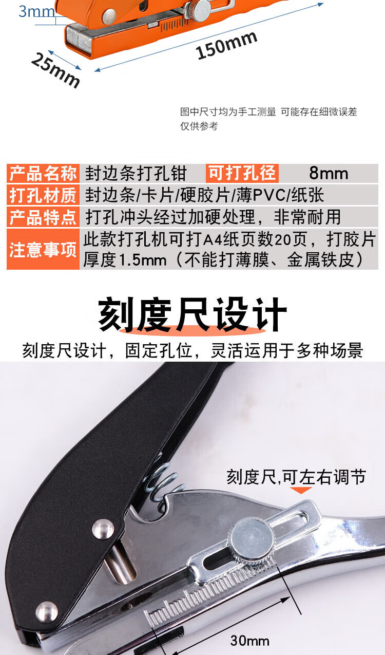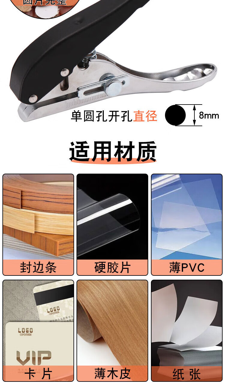 海斯迪克 打孔器 封边条PVC卡塑单圆形孔打孔机 8mm封边皮打孔钳+2.8钻头 HKCX-245