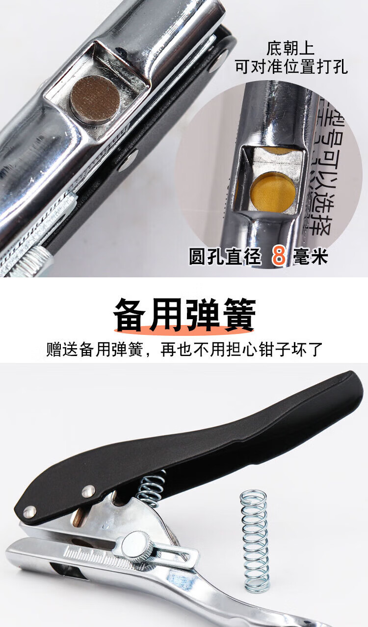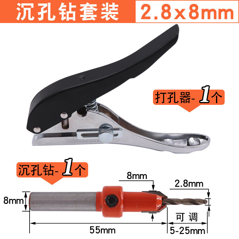 > 海斯迪克 打孔器 封边条PVC卡塑单圆形孔打孔机 8mm封边皮打孔钳+2.8钻头 HKCX-245