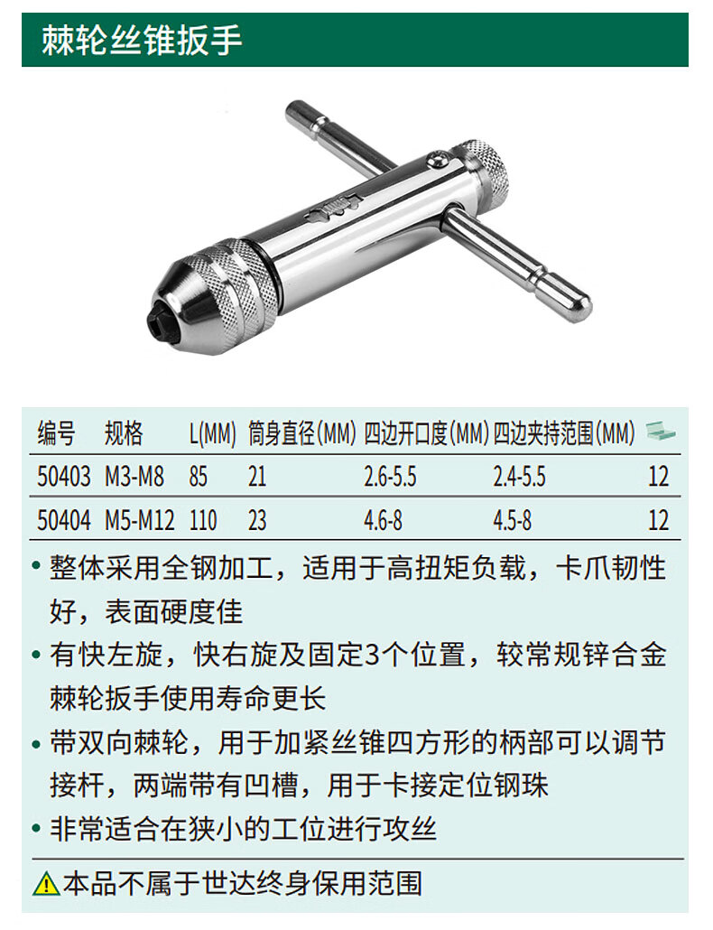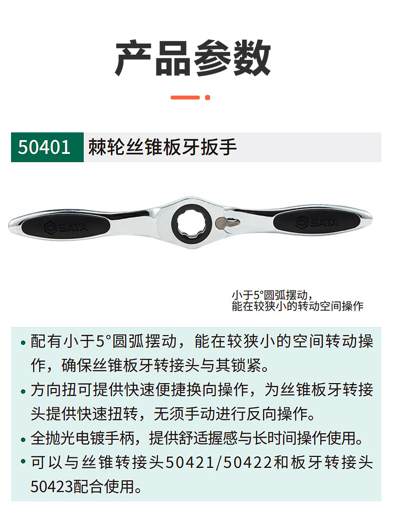 > 世达(SATA)50401 专业型棘轮丝锥板牙扳手 50401 专业型棘轮丝锥板牙扳手
