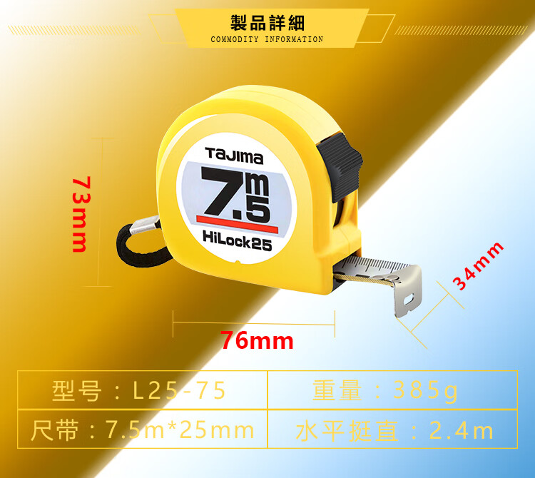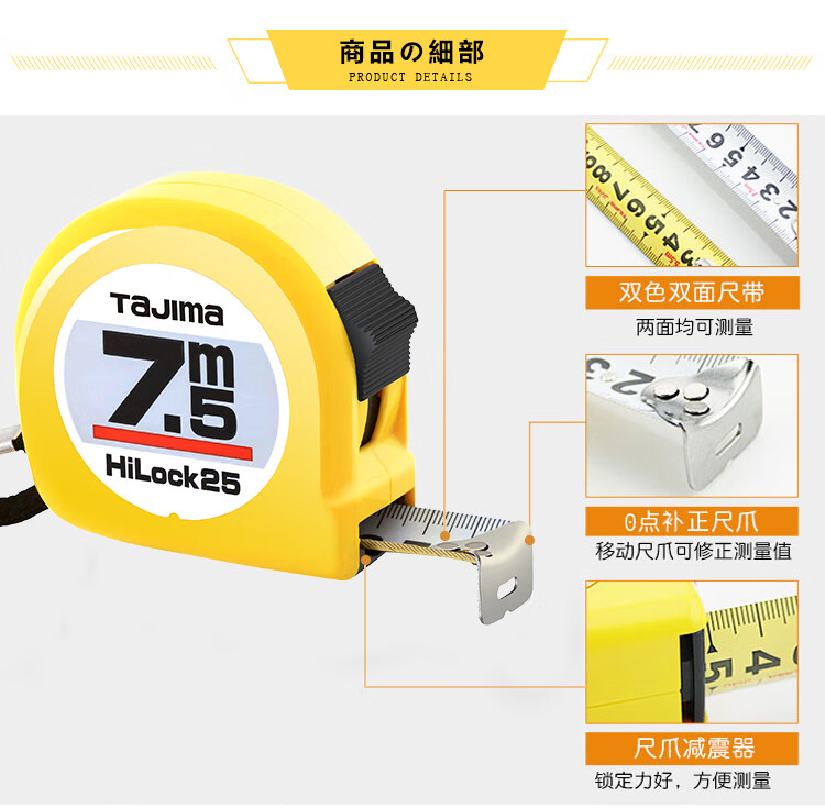 > 田岛(TaJIma)7.5米钢卷尺盒尺米尺木工尺公制25mm宽L2575 1001-0036