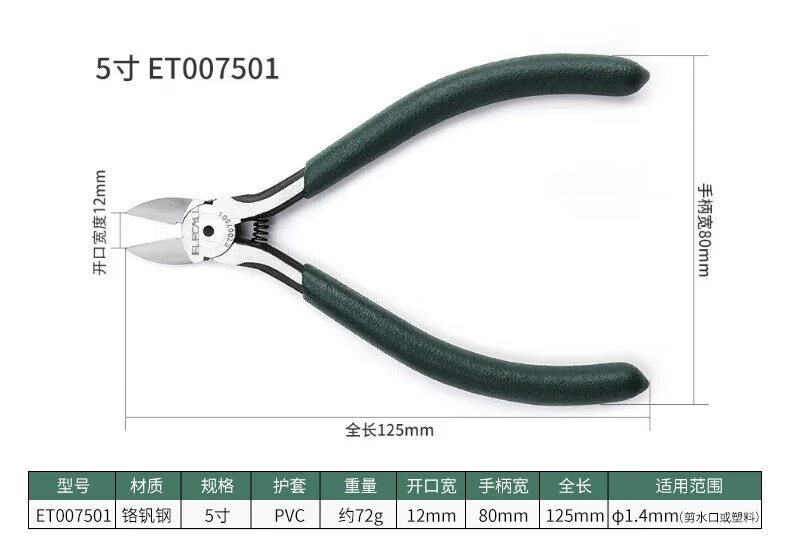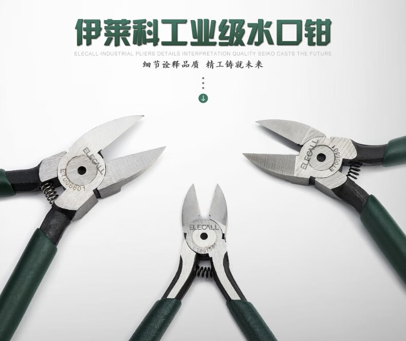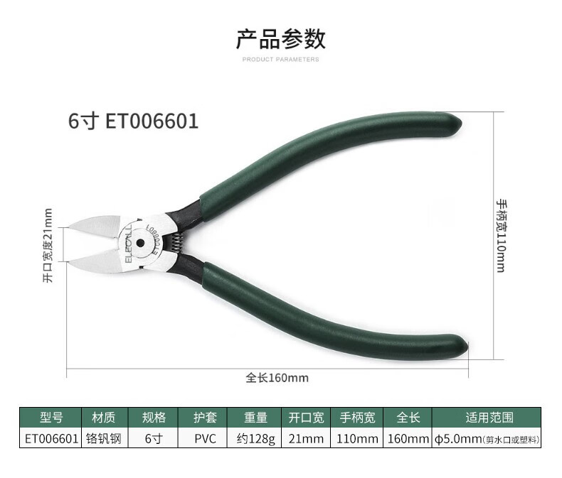 伊莱科(ELECALL) 工业级铬钒钢水口钳塑料剪平口剪斜口钳五金工具电子钳子斜嘴钳 6寸水口钳(21mm)ET006601