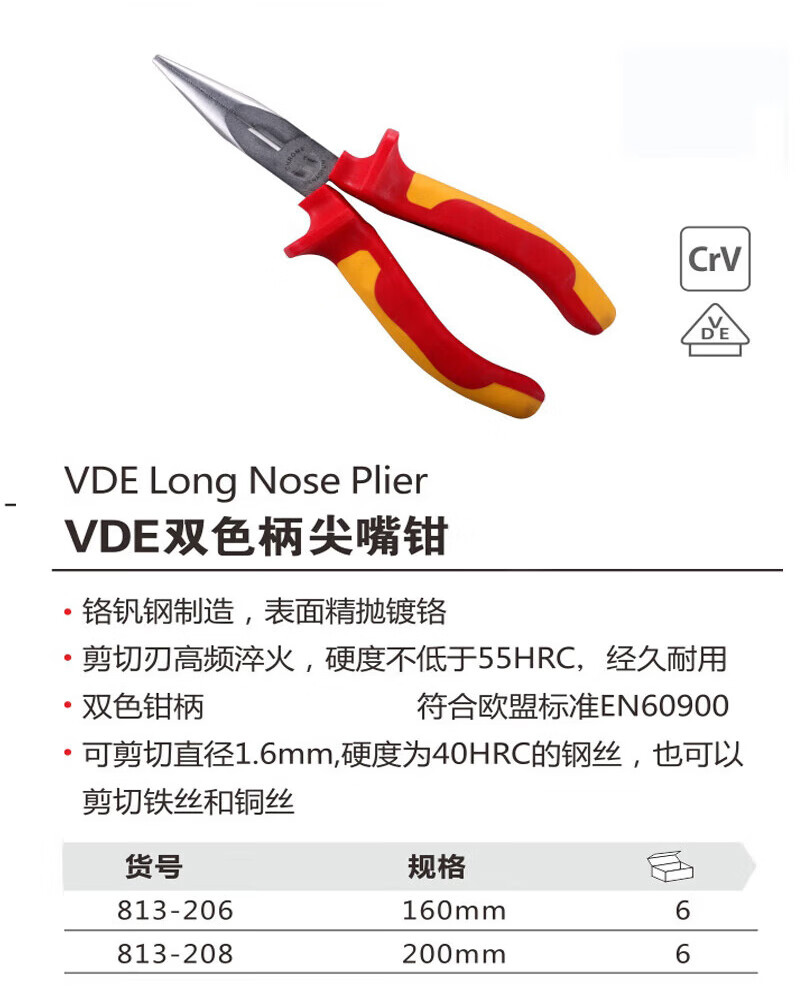 > 贝傅特 VDE双色柄老虎钳6 工业级钳子多功能钢丝钳 813-206