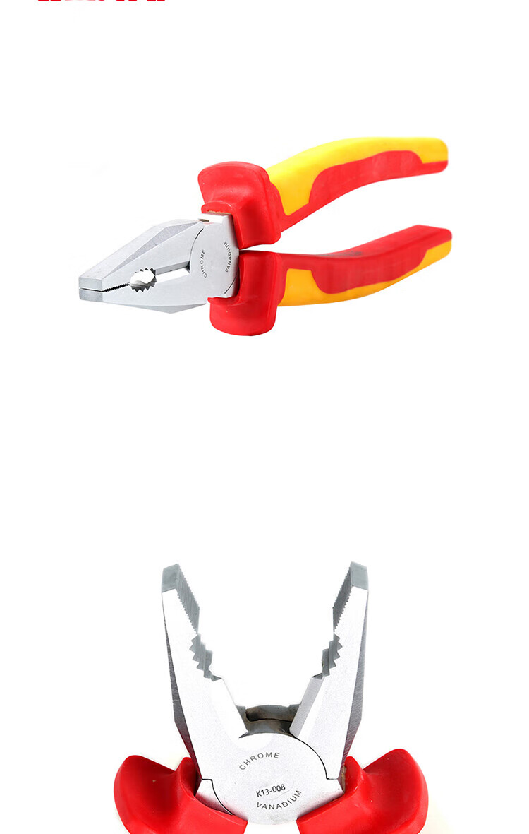 贝傅特 VDE双色柄老虎钳6 工业级钳子多功能钢丝钳 813-206