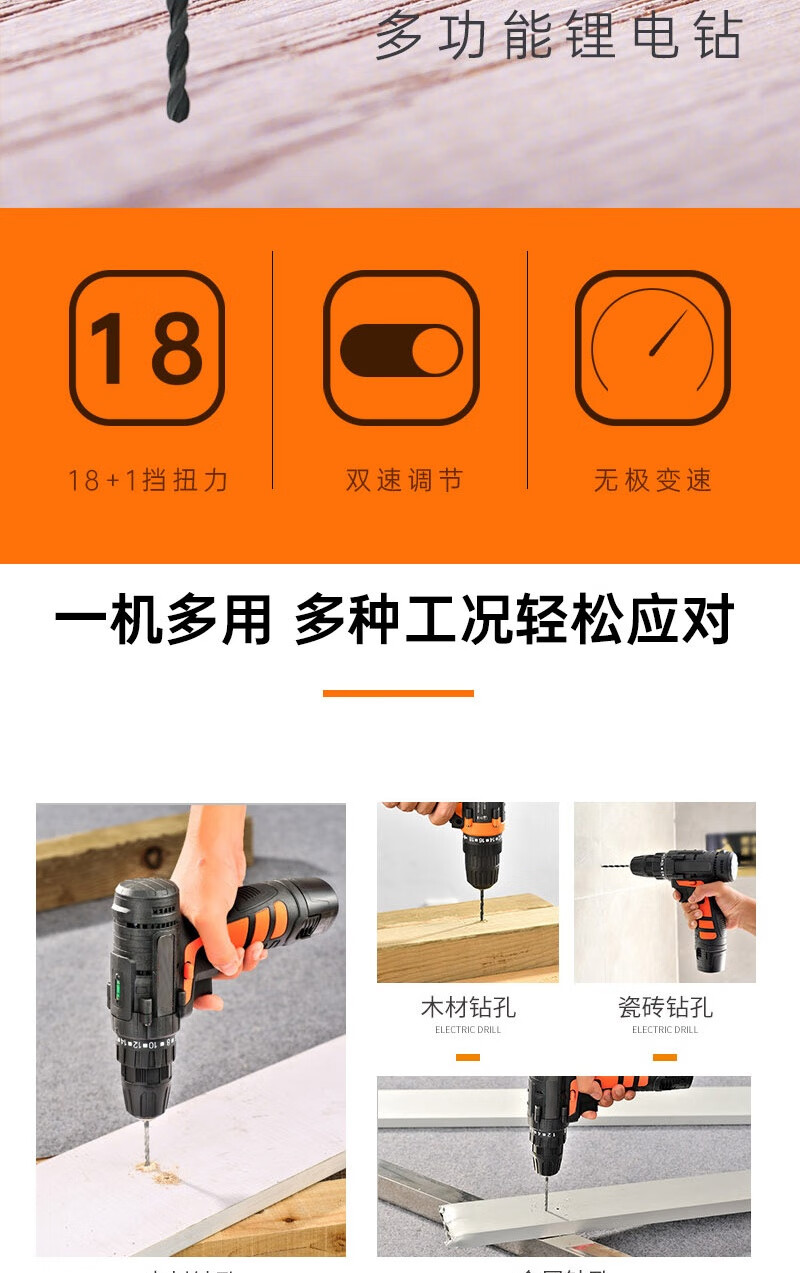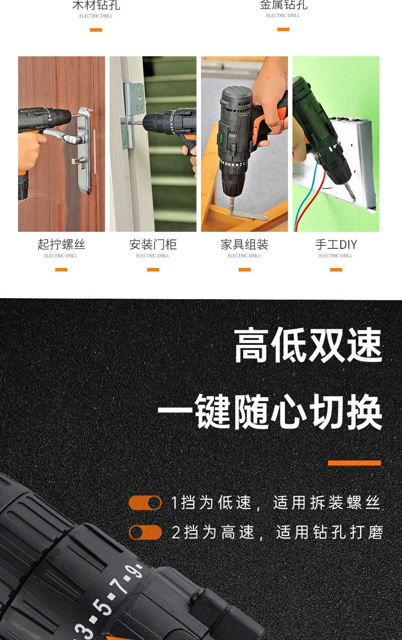 > 海斯迪克 HKsq-195 电动螺丝刀 多种功能充电电动螺丝批套装 双速锂电池手电钻 12V双速一电