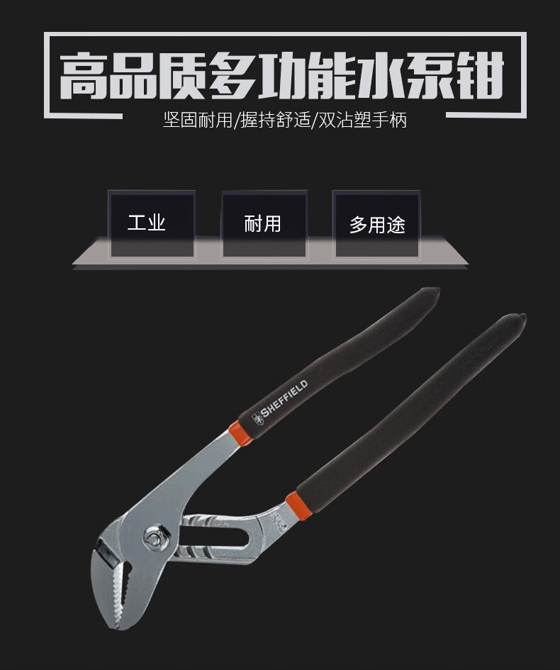 > 钢盾SHEFFIELD S044012 水泵钳多功能水管钳 鲤鱼钳优质钢材圆管钳子