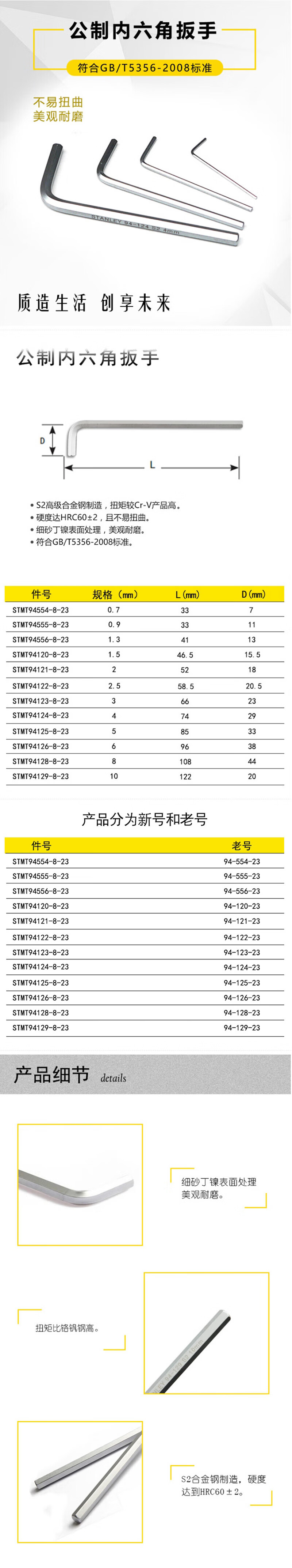 史丹利(STANLEY)公制内六角扳手0.9mm六角螺丝刀L型内六方六棱扳手STMT94555