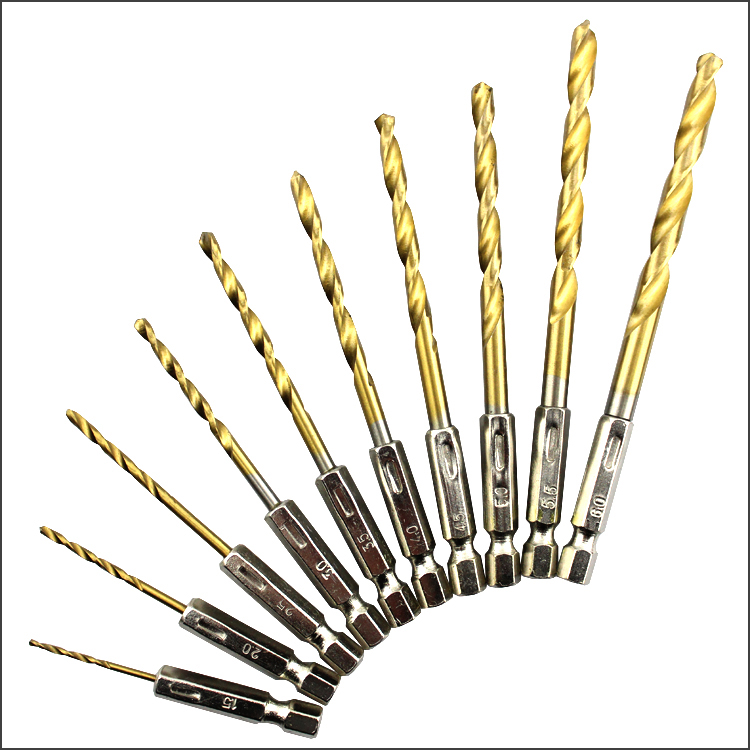 > 风批麻花钻6.35mm六角柄麻花钻1/4寸内六角柄钻头电动螺丝刀组套 镀钛麻花钻组套