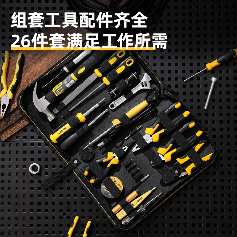 > 得力(deli) 电讯工具组套 26件专业电工检修维修手动工具套装DL1026E 4J00087