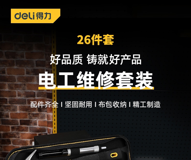 得力(deli) 电讯工具组套 26件专业电工检修维修手动工具套装DL1026E 4J00087