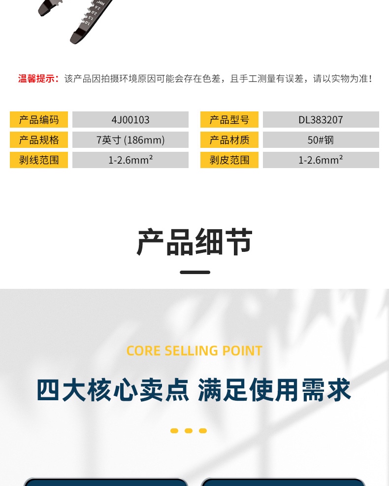 得力(deli) 剥线钳 多功能电工剥线钳电子手动工具7英寸 4J00103