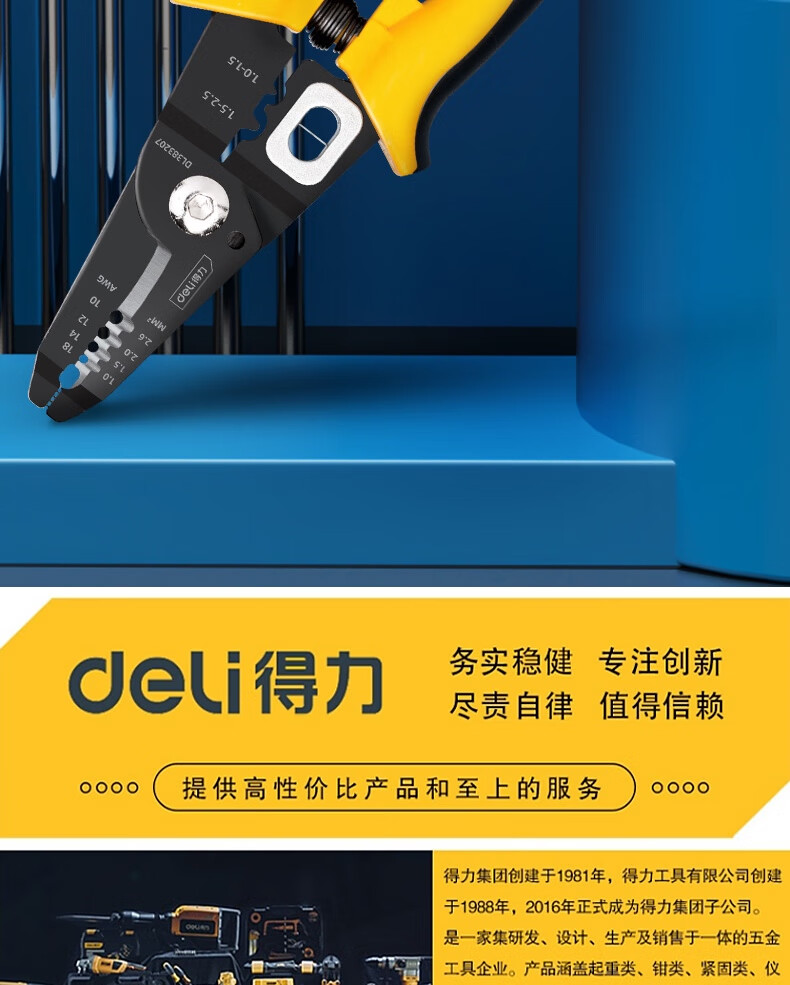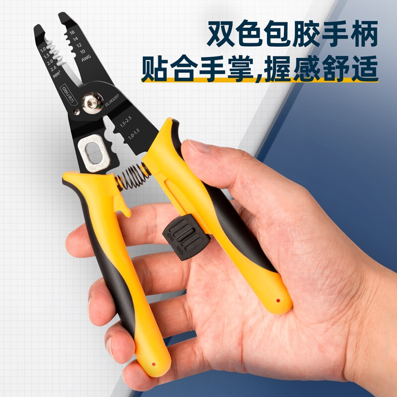 > 得力(deli) 剥线钳 多功能电工剥线钳电子手动工具7英寸 4J00103