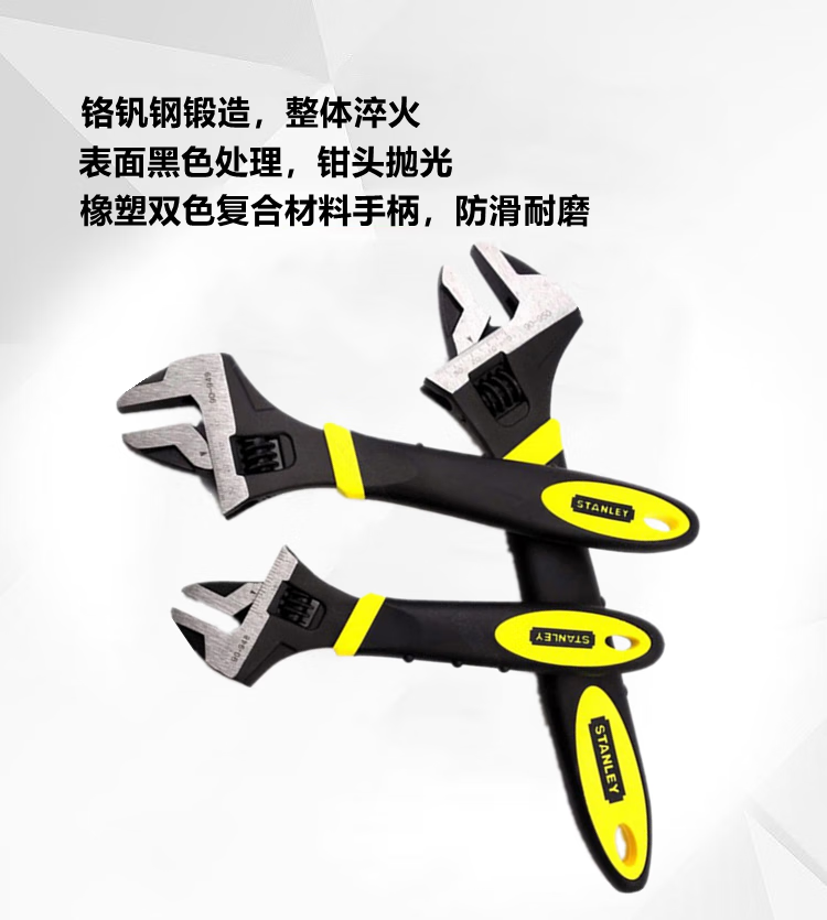 史丹利(STANLEY)90-948-23 8寸双色柄活动扳手 开口活络板手
