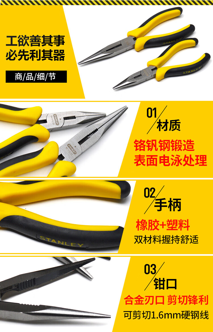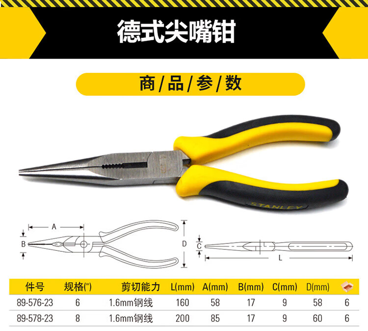 > 史丹利(STANLEY)德式专业尖嘴钳6英寸多功能尖头钳尖口钳尖咀钳89-576-23