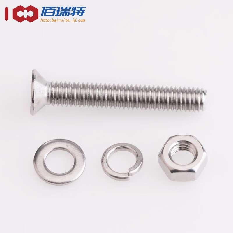 > 佰瑞特 304不锈钢沉头内六角螺丝螺母弹平垫套装大全平头螺栓组合螺钉 304沉头内六角(组套) M6*12mm【10套】
