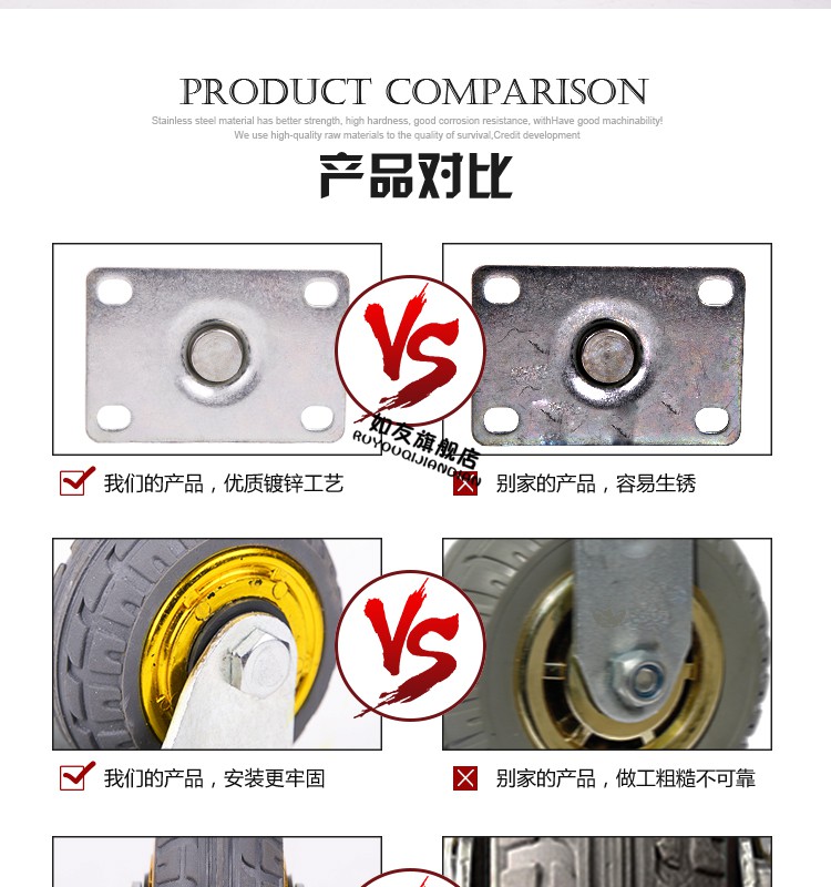> 万向轮载重型3寸万向轮轮子45寸重型拖车轮轮子橡胶静音轮小推车轮子脚轮 巧克力色