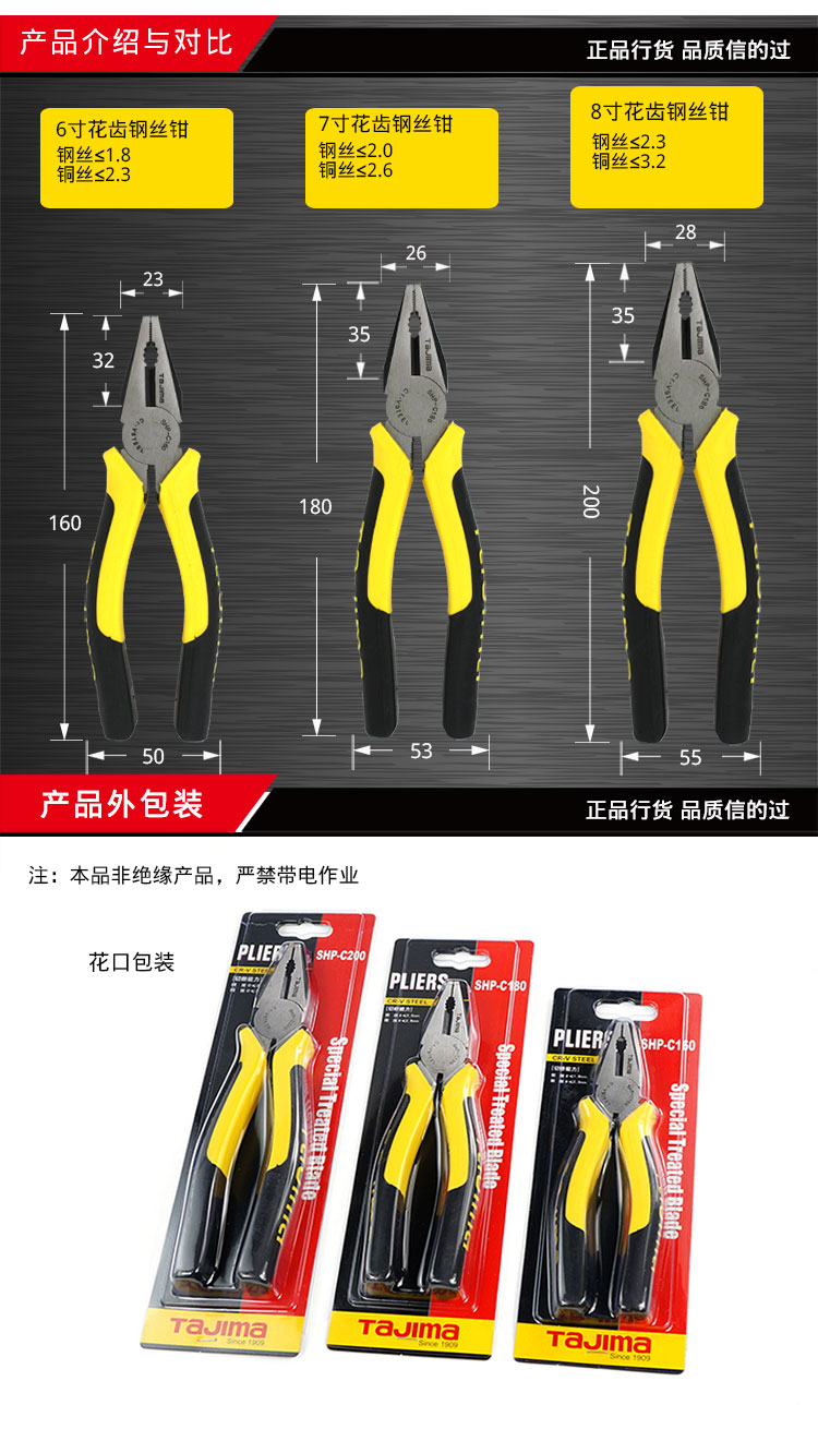 田岛(TaJIma)8寸花齿钢丝钳老虎钳SHP-C200 1201-0258