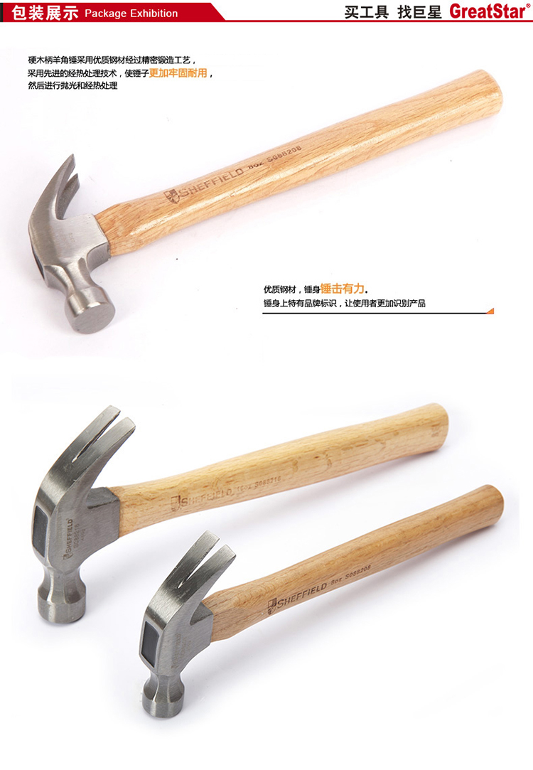 > 钢盾 (SHEFFIELD)S088208木柄羊角锤木头把羊头锤拔钉锤子铁锤榔头起钉锤SD S088208 8oz