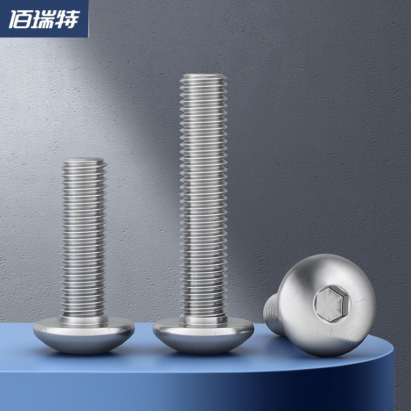 > 佰瑞特 304不锈钢大扁头内六角螺丝钉不锈钢半圆头螺钉大盘头蘑菇头螺栓 304大扁头内六角螺丝 M3*10【100粒】