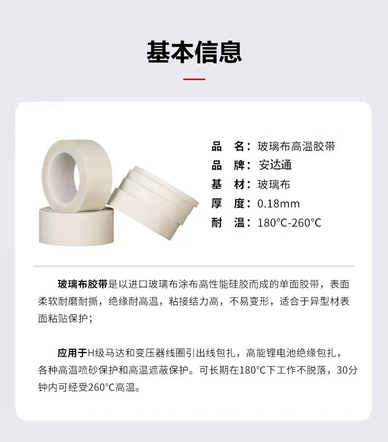 > 安达通 玻璃布胶带 白色耐高温高压玻璃纤维布隔热阻燃高温胶布 30mm*30m;0.18mm厚白色