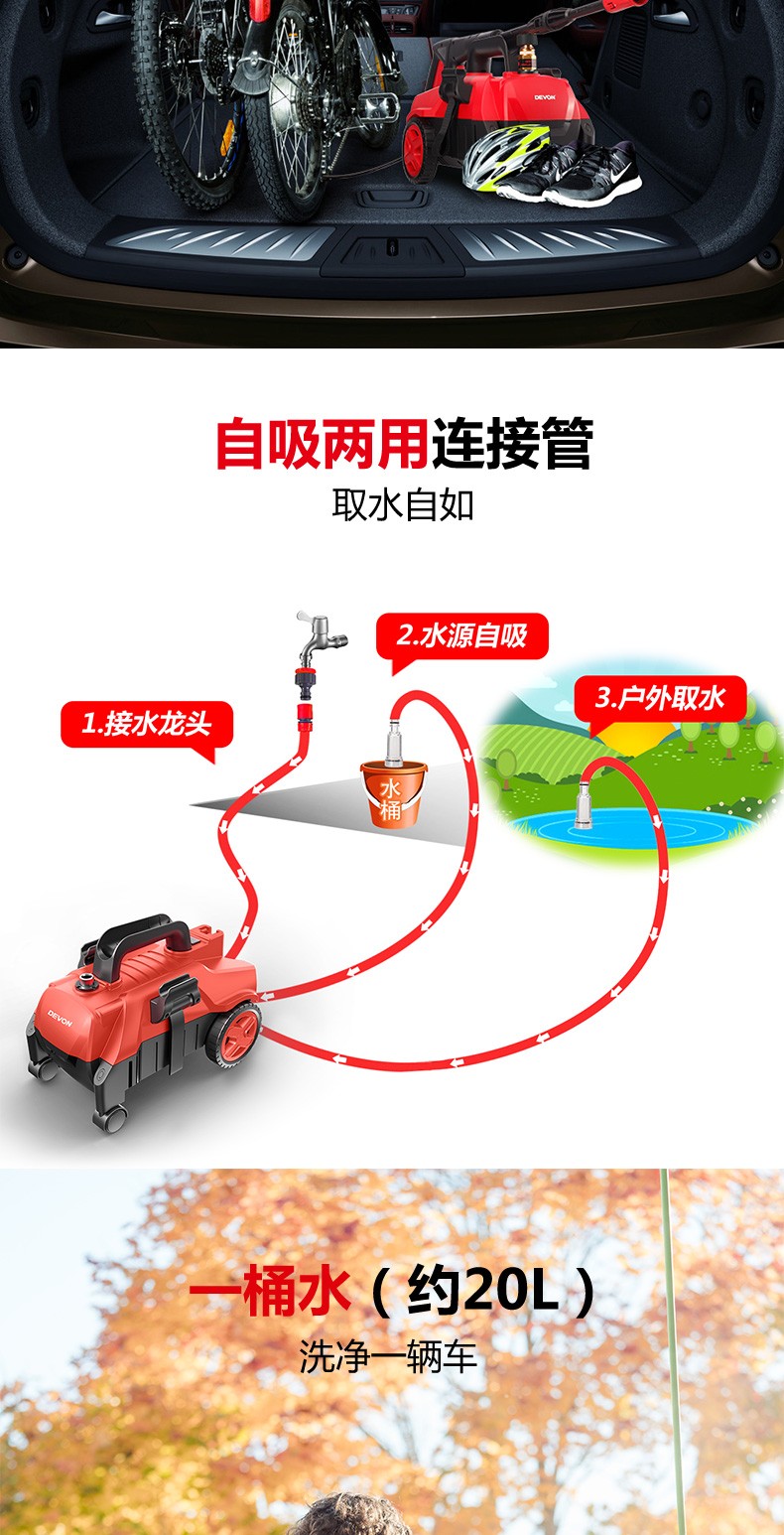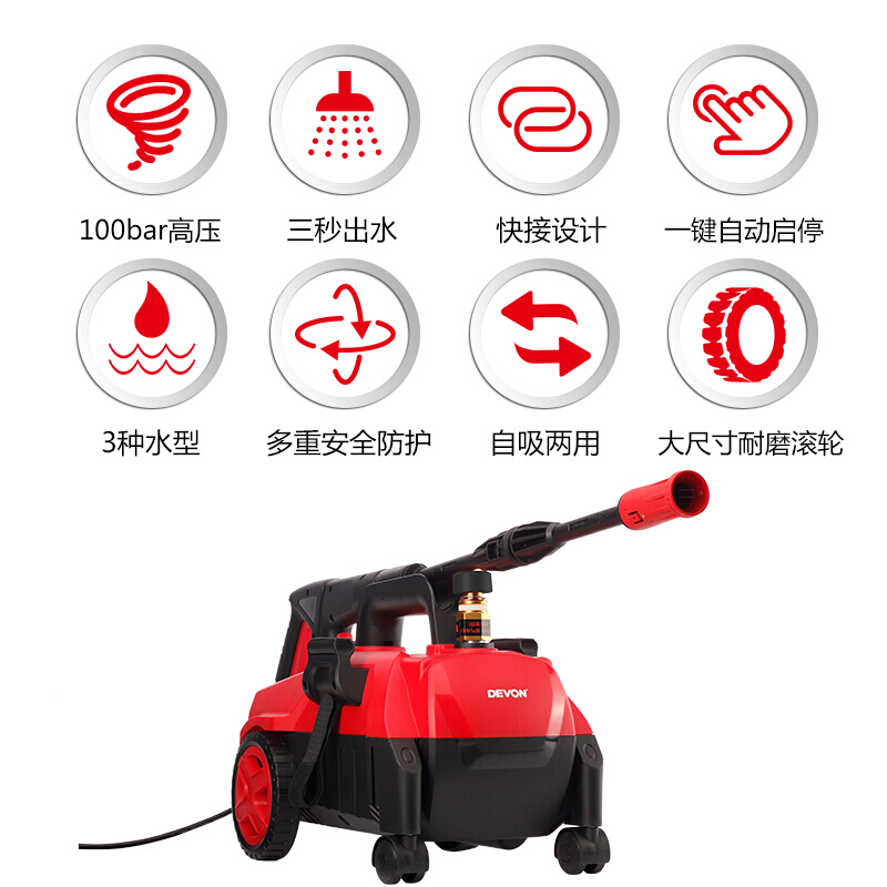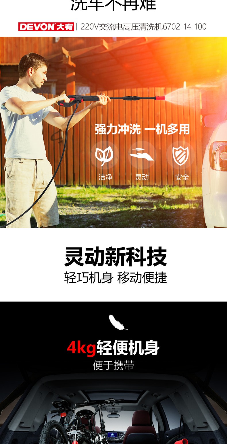 大有(Devon)6702-14-100 高压家用清洗机 洗车机 水枪便携式水泵刷洗电动工具 220V交流款
