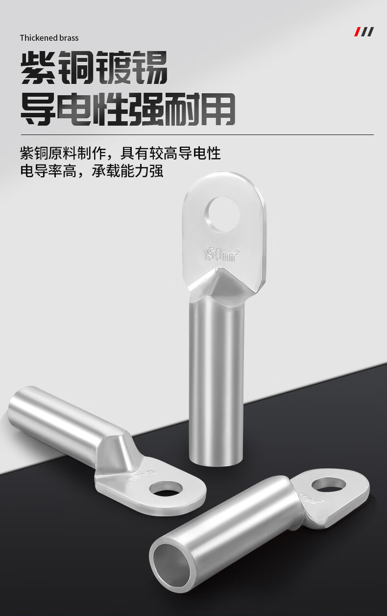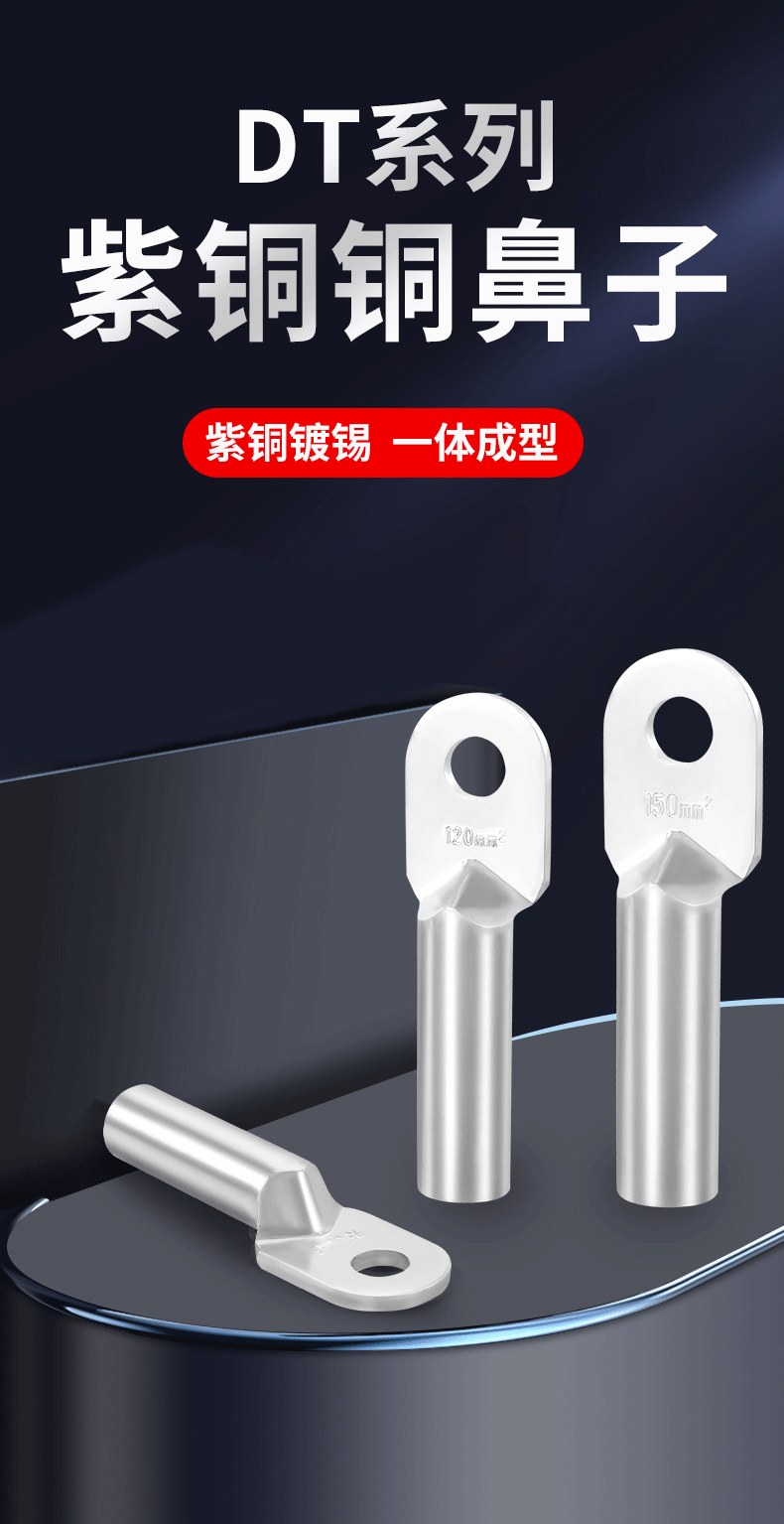 > 安达通 铜鼻子 DT铜鼻子紫铜镀锡加厚电揽铜接头4到630平方电线铜线鼻子 镀锡DT-300/1只