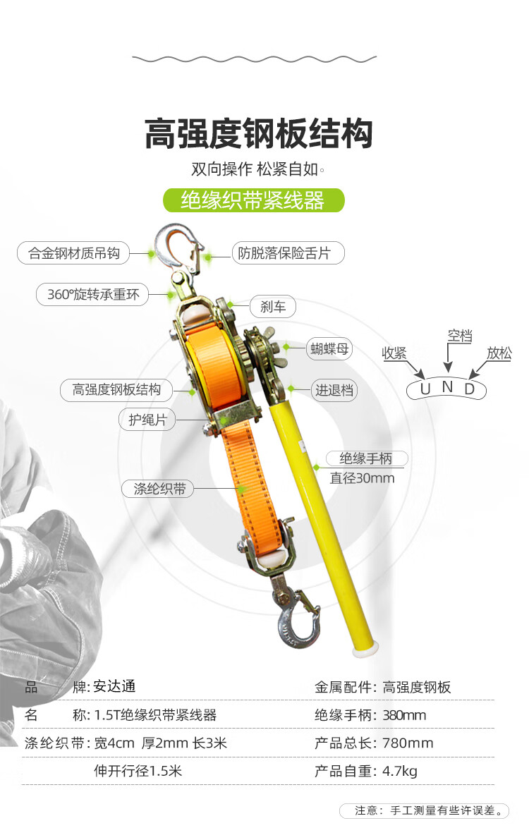 > 安达通 紧线器 电工拉线紧线器多功能电力扳手紧线器钢丝绳拉紧器 1.5T