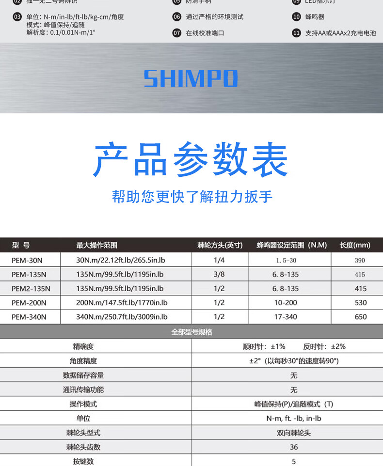 SHIMPO新宝 PEM系列数显?度扭?扳? PEM-30N