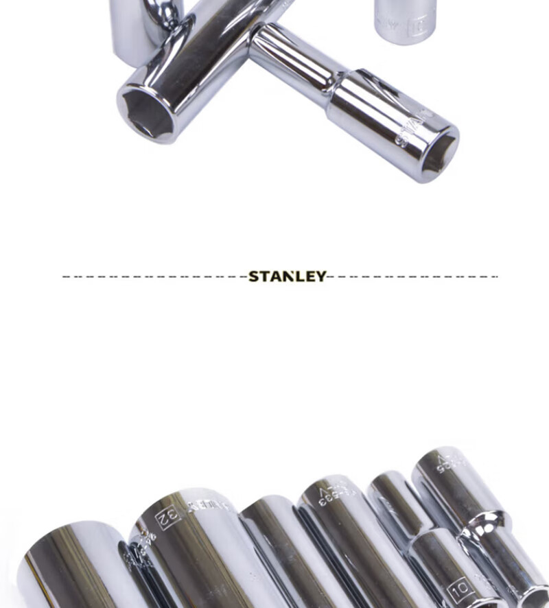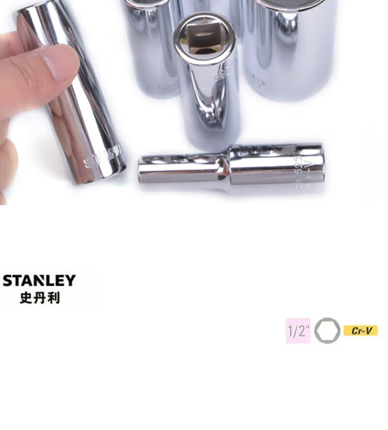 > 史丹利(STANLEY)12.5MM系列公制6角长套筒1/2英寸大飞棘轮扳手套筒10mm93-525
