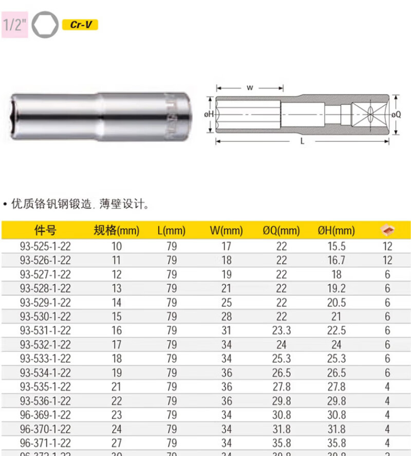 史丹利(STANLEY)12.5MM系列公制6角长套筒1/2英寸大飞棘轮扳手套筒10mm93-525