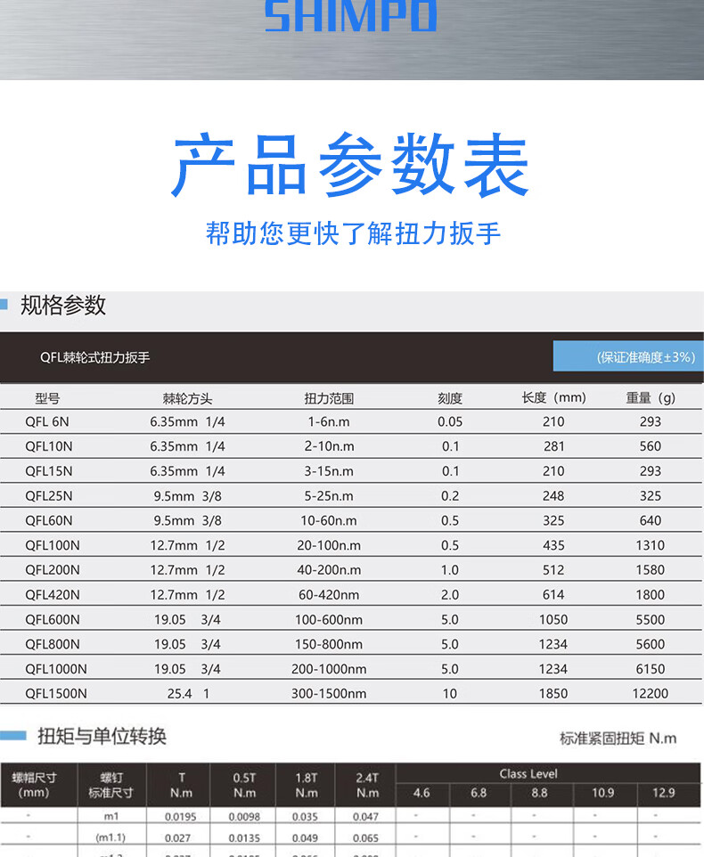 SHIMPO新宝QFL-MH系列脱跳式扭?扳? QFL15N-MH